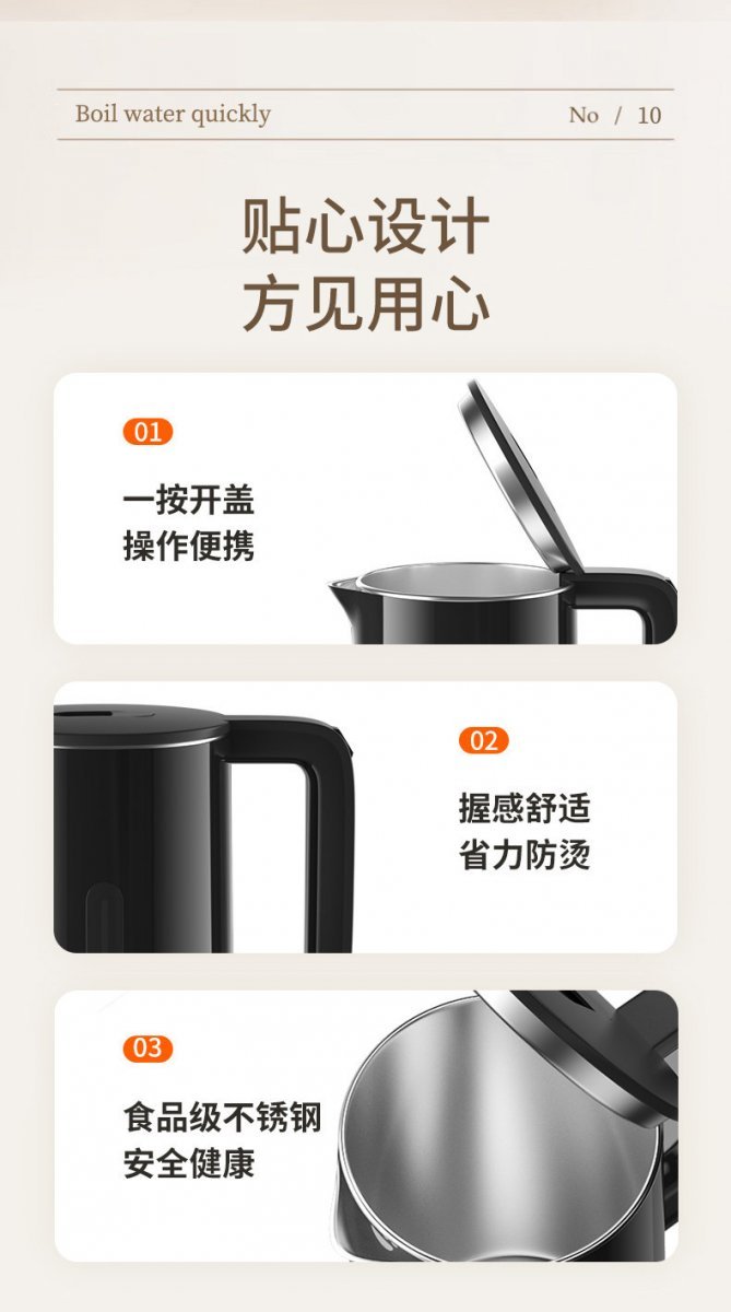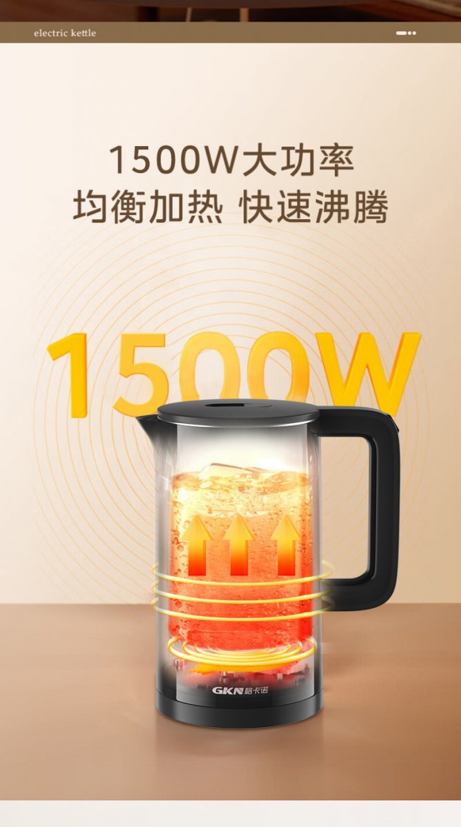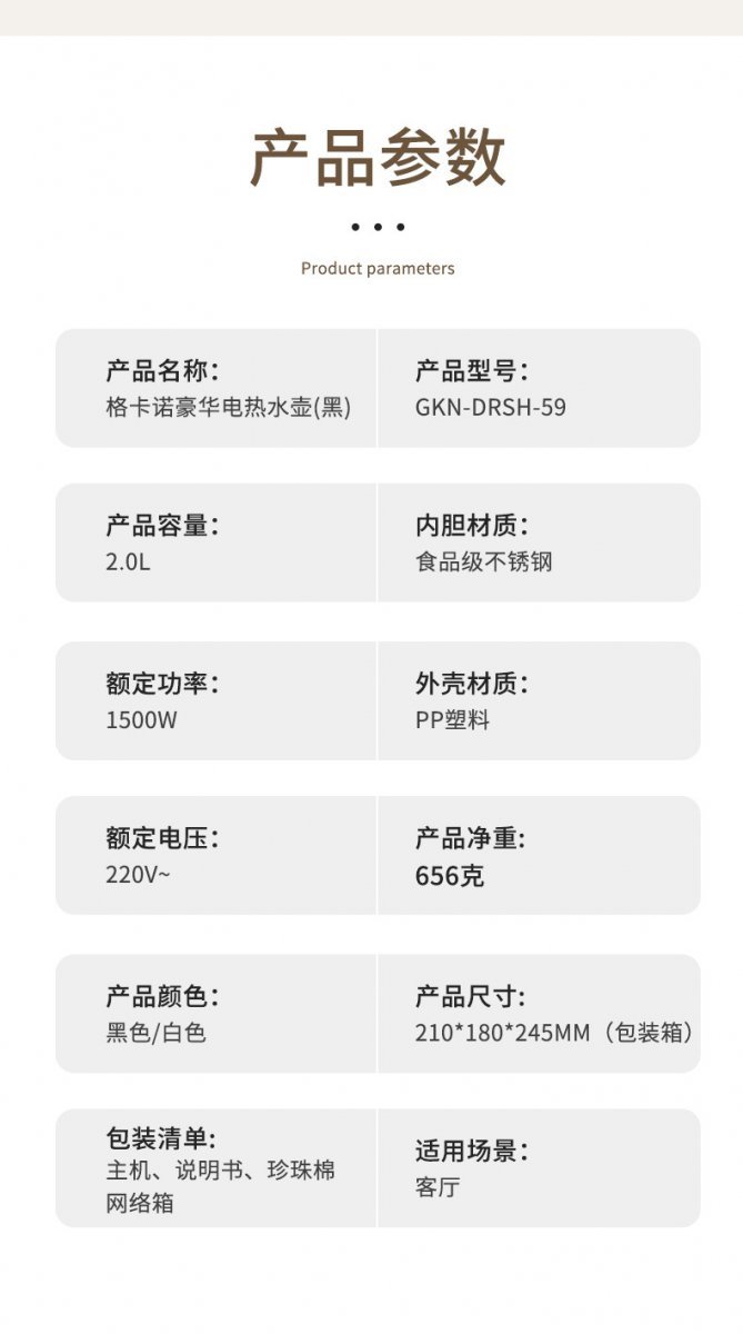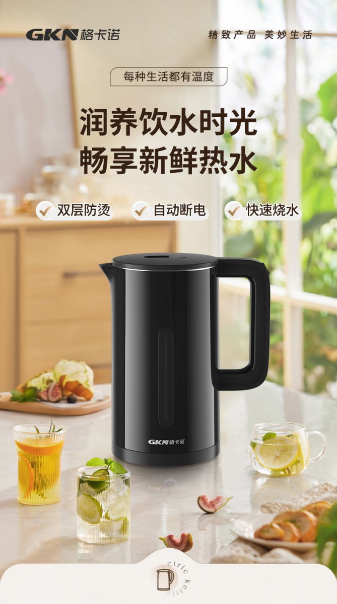 格卡诺豪华电热水壶家用大容量烧水壶自动断电双层防烫开水壶GKN-DRSH-59