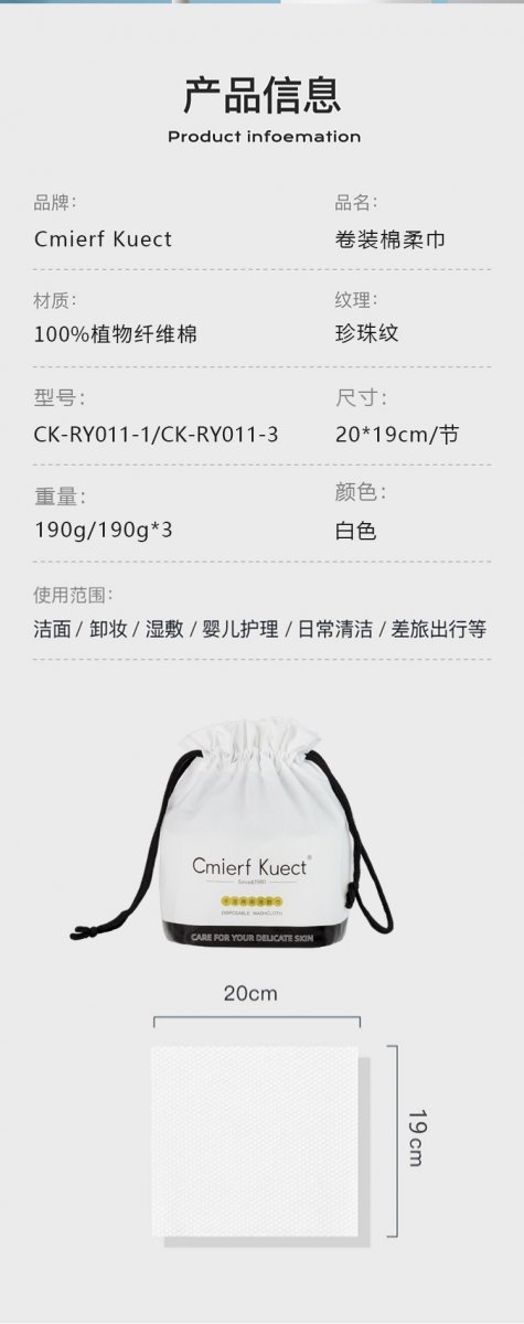 Cmierf Kuect卷装棉柔巾加厚洗脸巾擦脸化妆干湿两用1包CK-RY011-1
