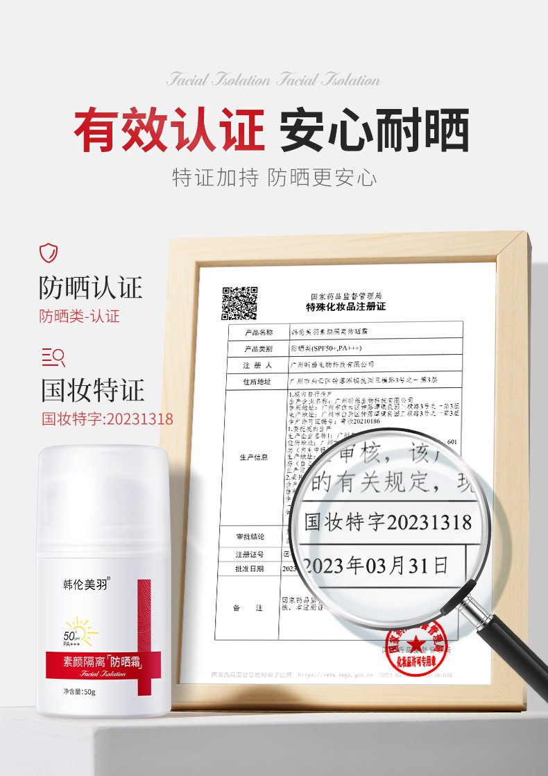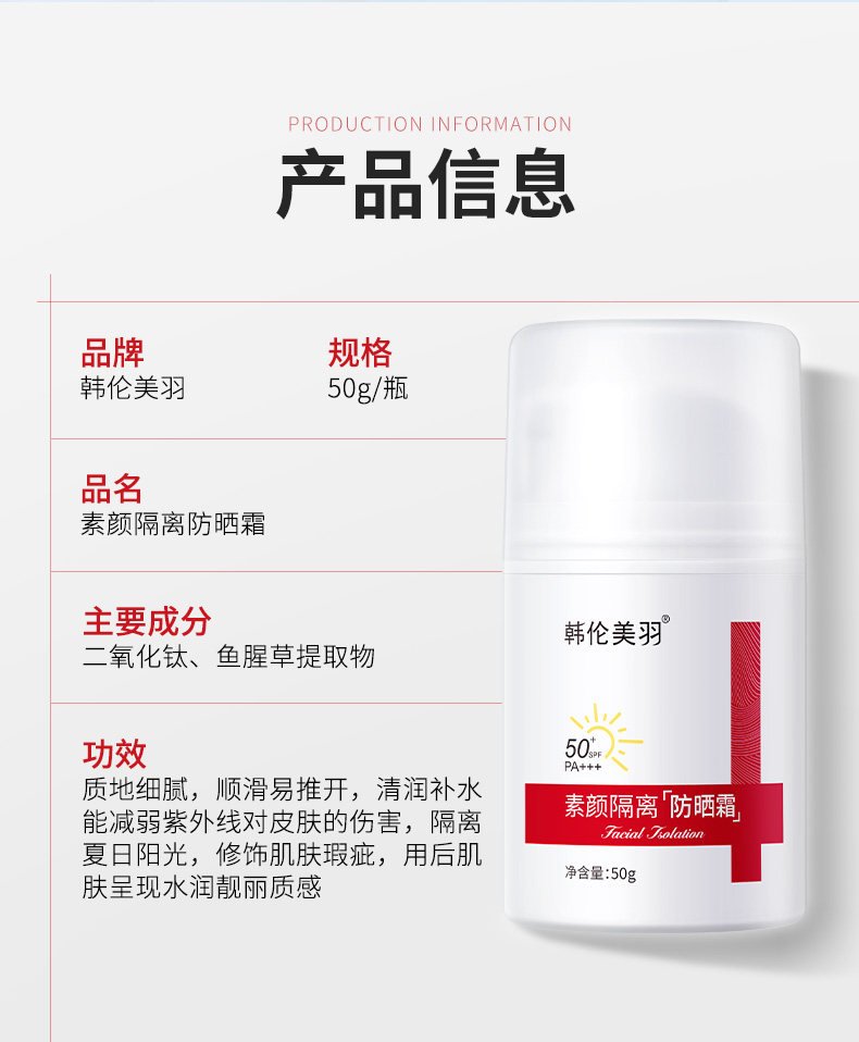 韩伦美羽素颜隔离防晒霜美白脸面部身体50倍隔离防紫外线男女通用